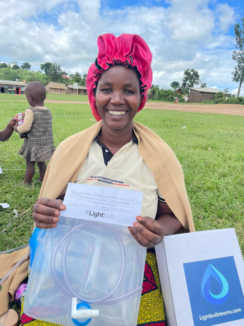 We work with charity partners to distribute water filters to communities in Uganda. Once it has been delivered, your team will receive a photograph of their filter in the hands of the end recipient.